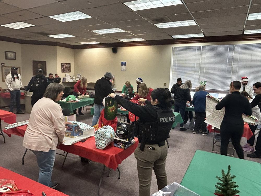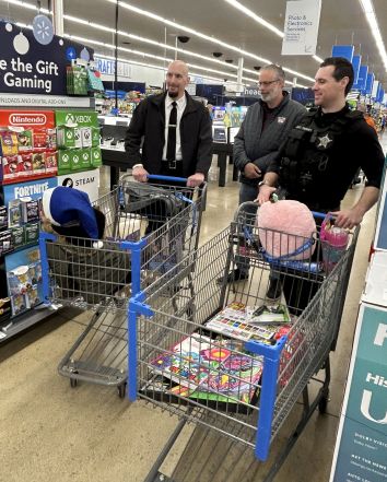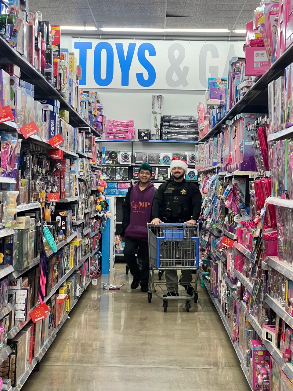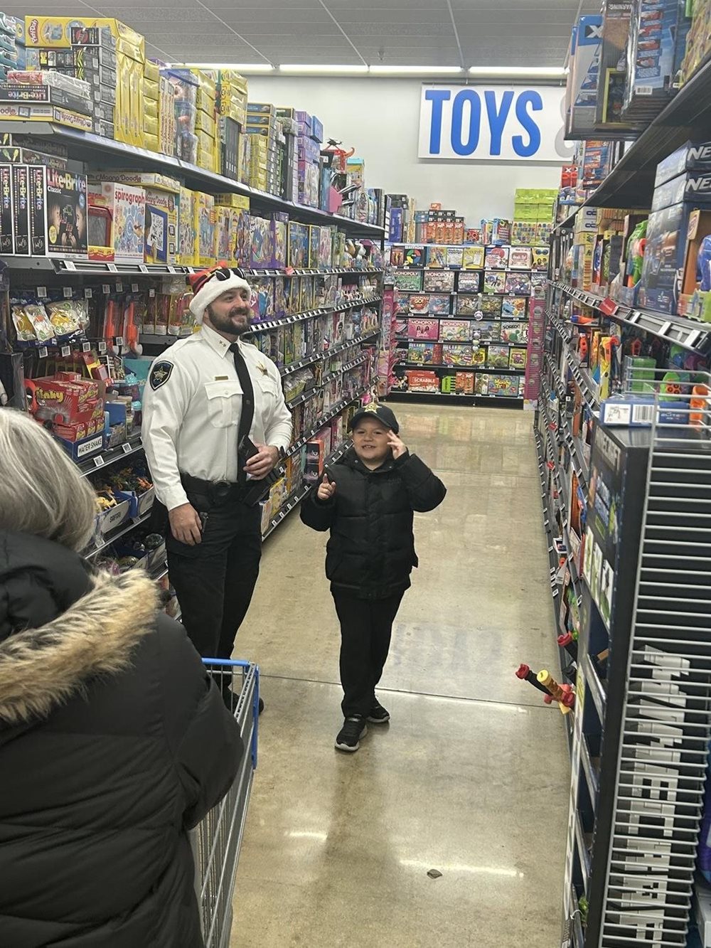 Shop with a cop occurs a few weeks before Christmas each year. The children are driven in a police car given a gift certificate to purchase any items they want in the store. The police officer acts as a chaperone and companion to the children throughout the day as they shop for items.